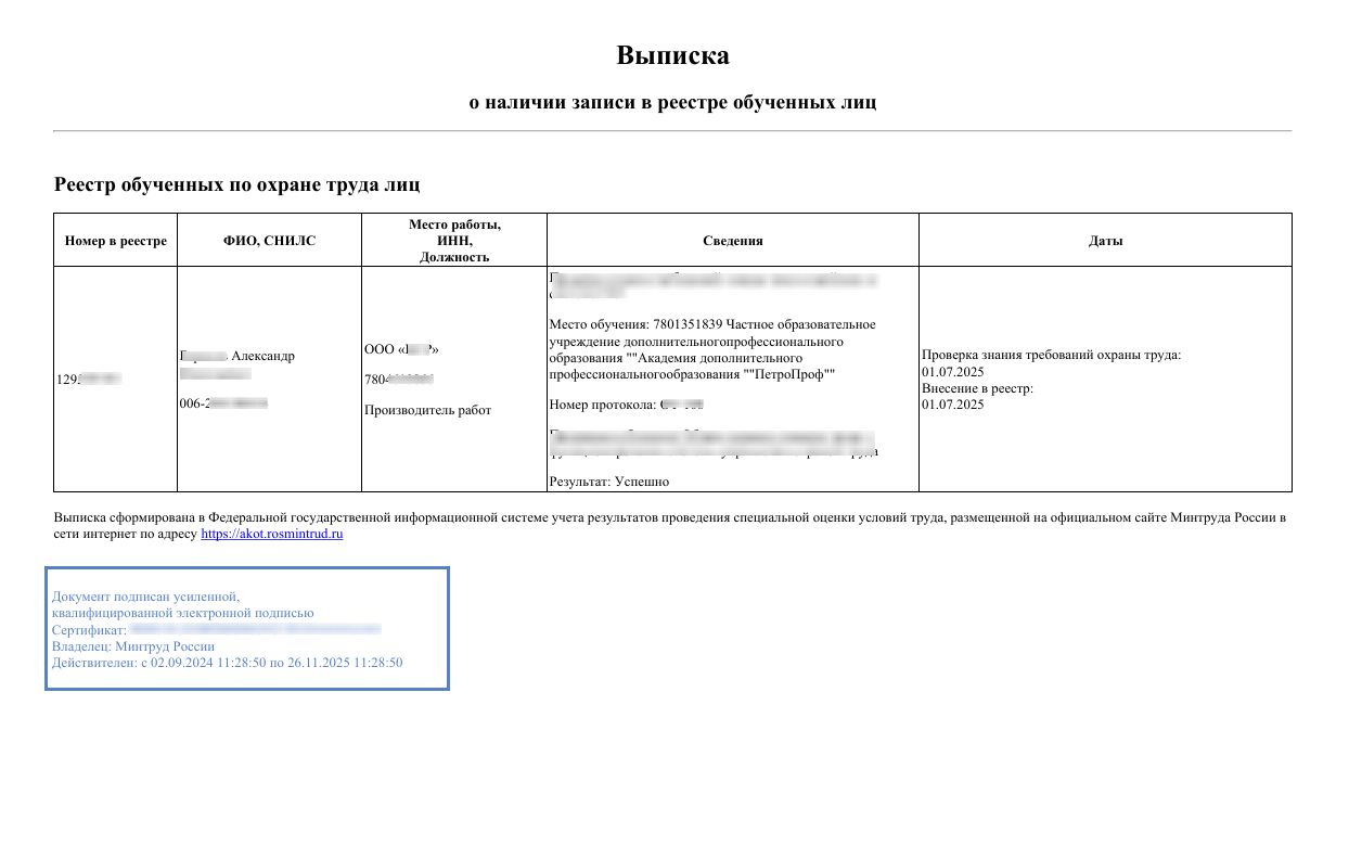 В результате обучения вы получите не только документальное подтверждение своих знаний в области ОТ, но и — что самое главное — практические навыки, которые пригодятся в повседневной работе. Регулярная проверка знаний об охране труда позволит вам быть уверенным в своей квалификации и избежать возможных нарушений в будущем.